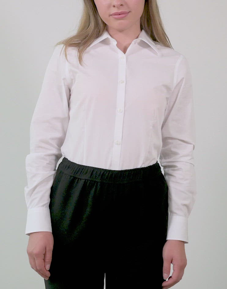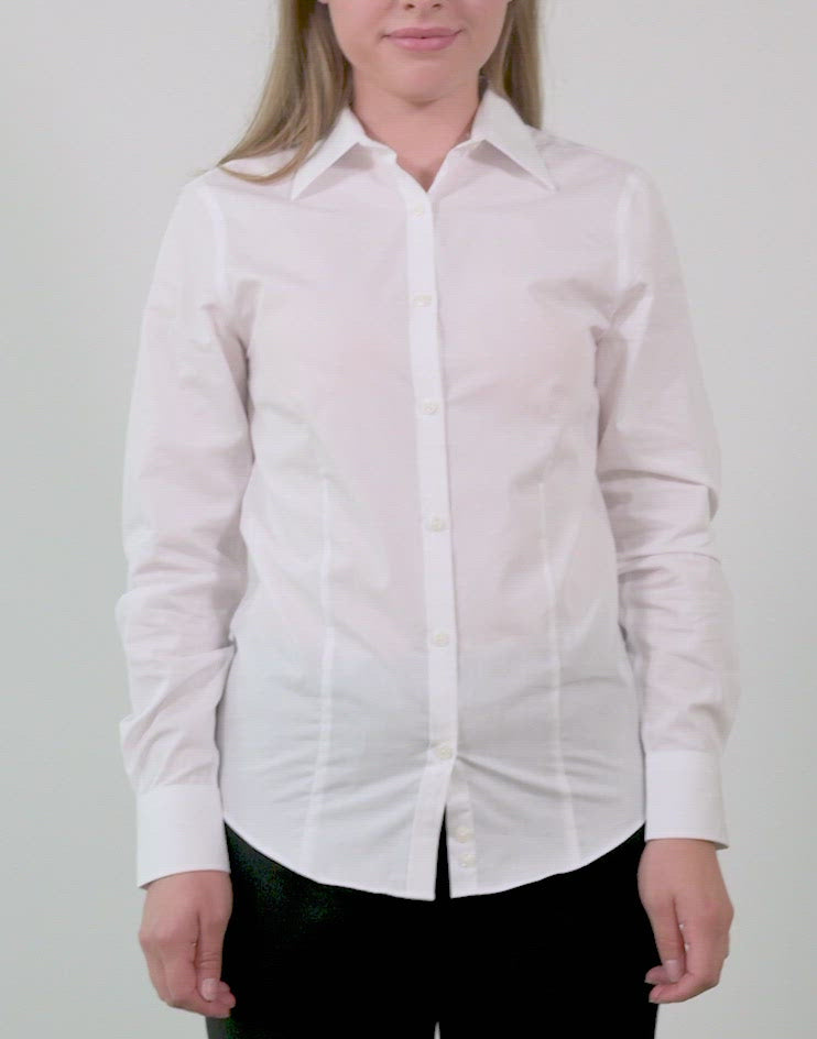 Women’s Classic White Button Front, Collar Dress Shirt