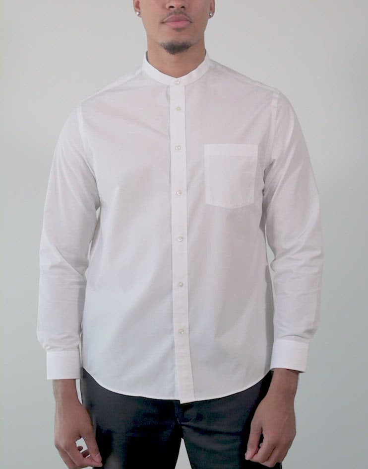 The classic white button front dress shirt is a staple piece for any wardrobe. The dress shirt has a classic spread collar, button sleeve pocket with adjustable cuff and a back pleat for comfort and style. The dress shirt has a classic fit and is made of 65% cotton, 35% polyester.