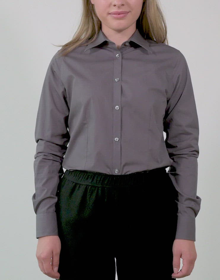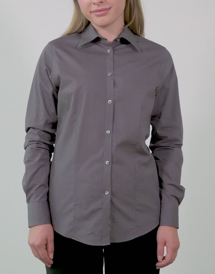 Women’s Classic Dark Grey Button Front, Collar Dress Shirt