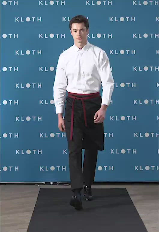 This black bistro apron features contrasting burgundy ties for a unique and stylish look. The double front pockets allow you to keep all your kitchen tools close by and easily accessible. Made from 100% cotton, this apron is easy to wash and long lasting, perfect for frequent use.